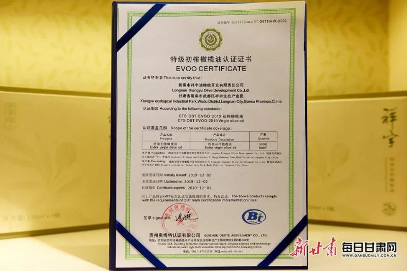 2019年12月祥宇橄欖油獲編號(hào)為001的